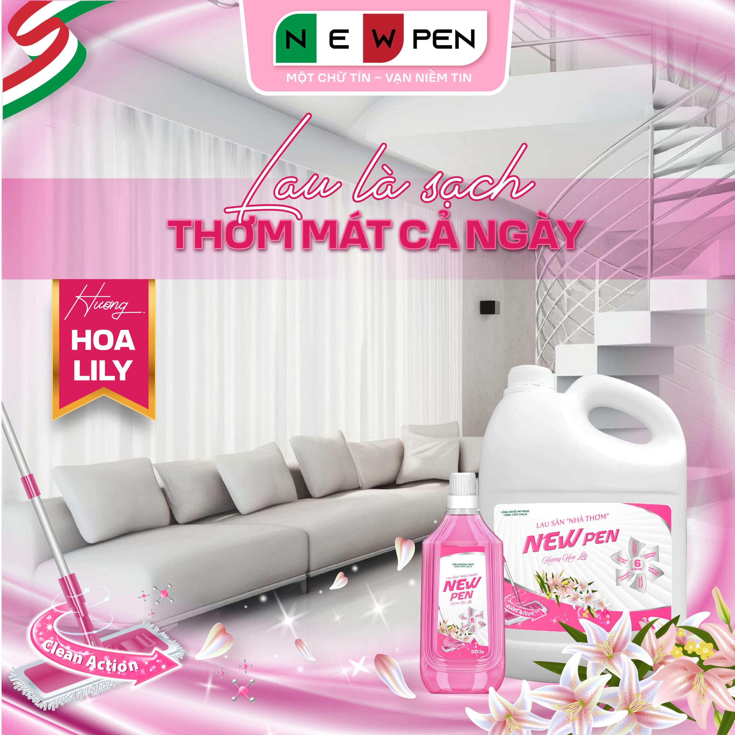 Lau sàn “Nhà thơm” NEWPEN – Hương Lily thơm ngát, giúp sàn nhà sáng bóng và sạch khô ráo ngay khi lau, loại bỏ vi khuẩn trên mọi bề mặt khi sử dụng.